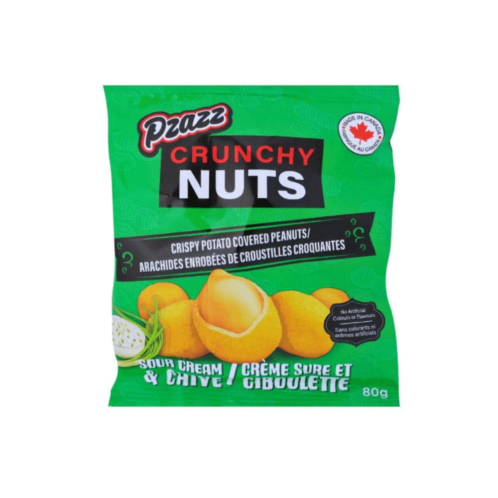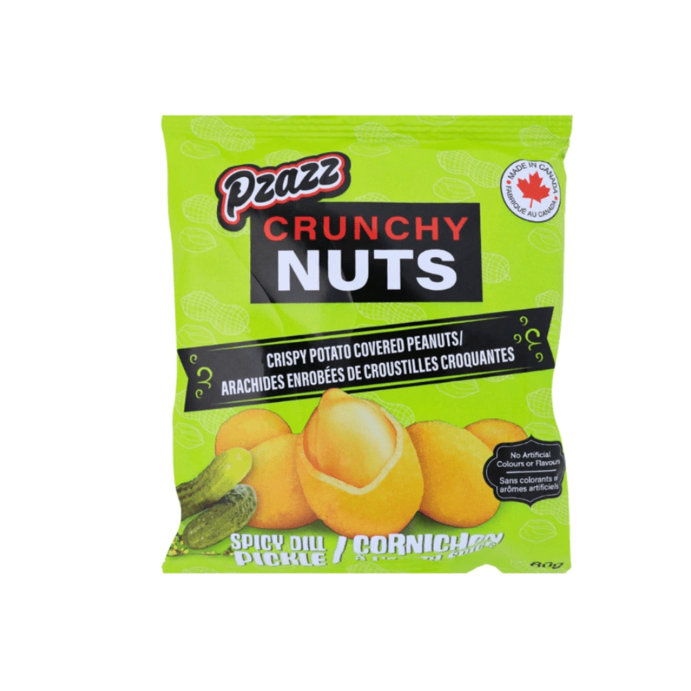 Ces arachides croquantes a saveur de cornichons à l'aneth, assaisonnées, à la crème sûre et ciboulette ou sel et vinaigre.