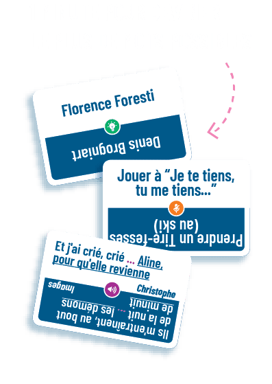 Contenu original : des mots à faire deviner en mimant, décrivant, dansant, fredonnant, ou en finissant les paroles de chansons