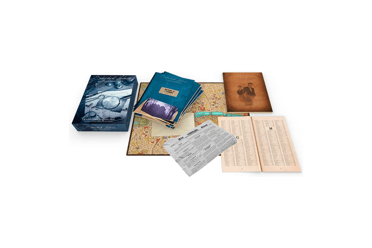 Sherlock Holmes détective Conseil : Carlton House & Queen's Park vous propose une immersion dans les crimes et intrigues du Londres victorien. Menez l'enquête avec votre équipe et, à l'aide de journaux, de l'annuaire et du plan de Londres, résolvez les affaires et tentez de surpasser le plus célèbre des détectives.
