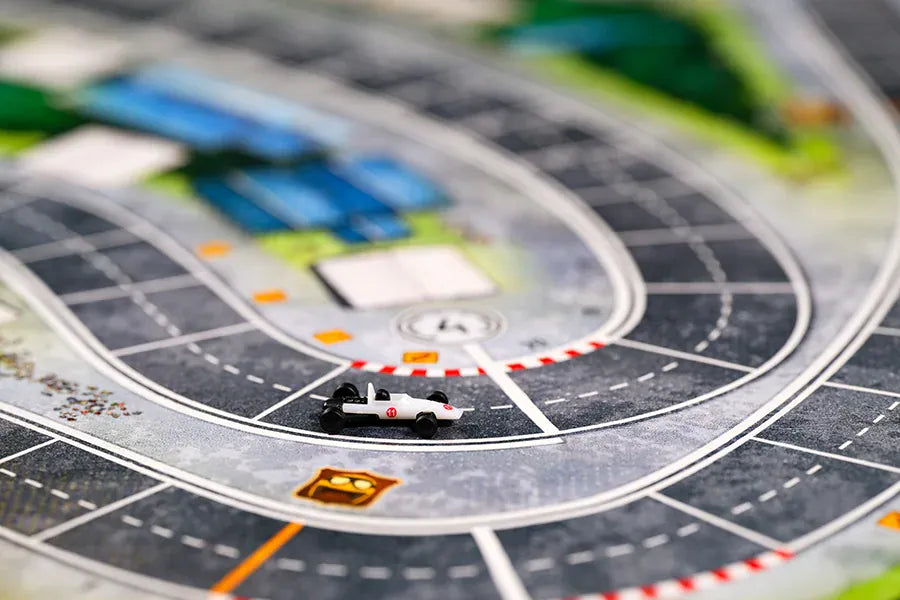 Sur le circuit d’Afrique du Sud, plusieurs cases sont couvertes de graviers. À la fin de ton tour, si ta voiture s’y trouve, tu dois payer 1 Heat si ton moteur en contient. Une pression constante qui t’oblige à mieux planifier tes freinages et tes accélérations. En Allemagne, les chicanes composées de deux lignes de virage consécutives avec la même limite de vitesse forcent des choix techniques cruciaux, surtout avec le module Météo et conditions de piste.
