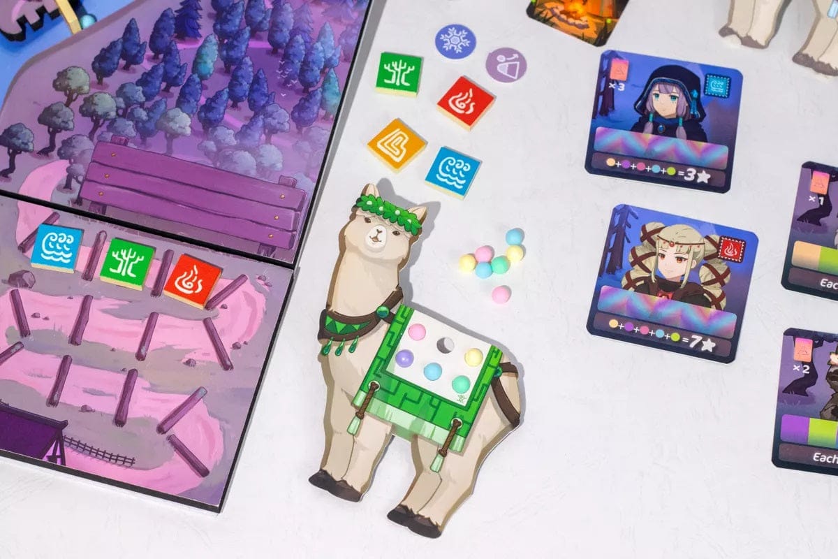 La partie se déroule sur cinq manches, chacune rythmée par un moment clé où les perles sont libérées et roulent physiquement le long des rivières, créant une tension visuelle et stratégique unique. Les perles collectées sont d’abord stockées sur ton alpaga, puis livrées aux villageois afin de marquer des points et de compléter des objectifs. Des fées bienveillantes et des cartes camp ajoutent des pouvoirs tactiques qui renouvellent chaque partie. 12 Rivers est un jeu de stratégie, un jeu familial évolutif et un jeu interactif qui combine choix judicieux, timing et observation.