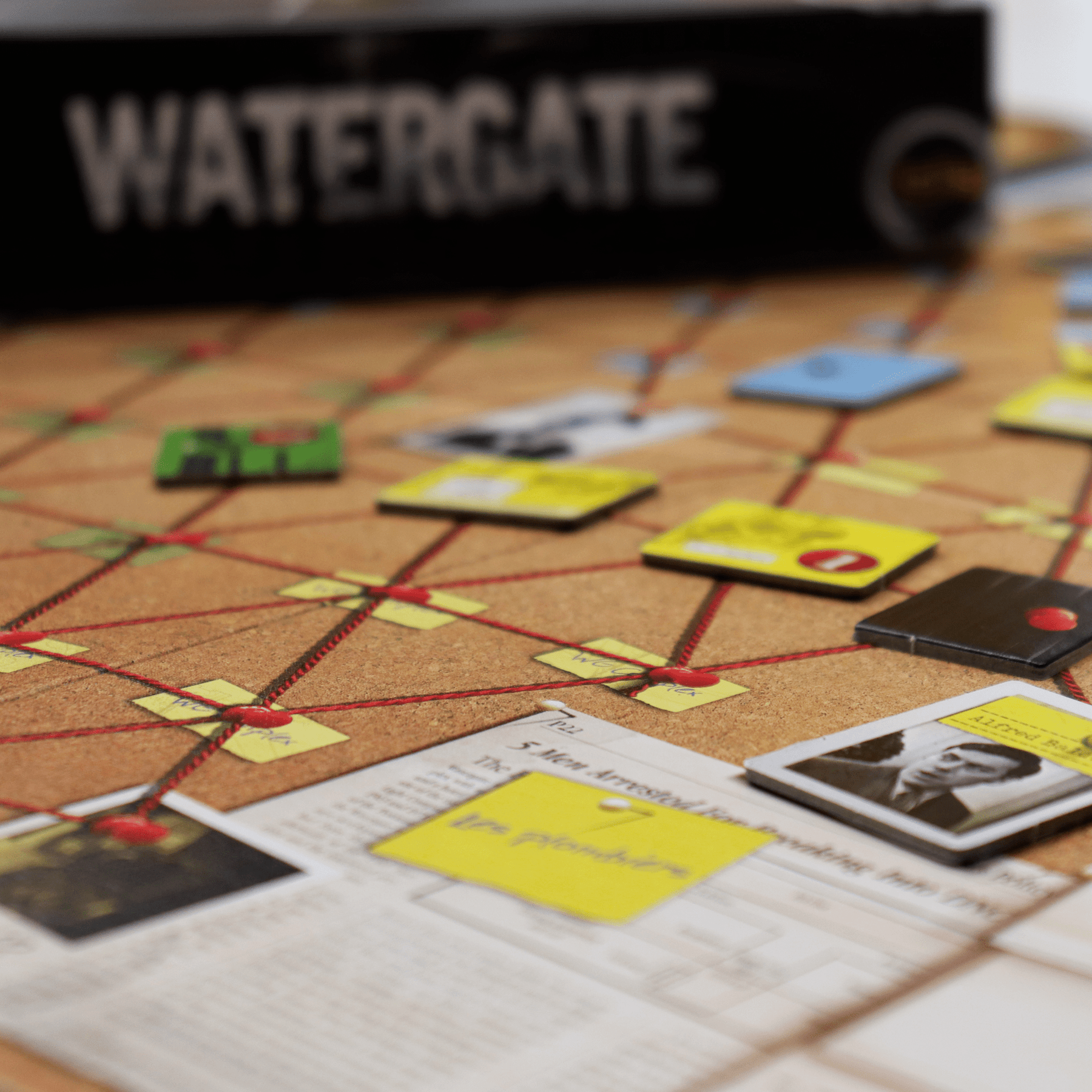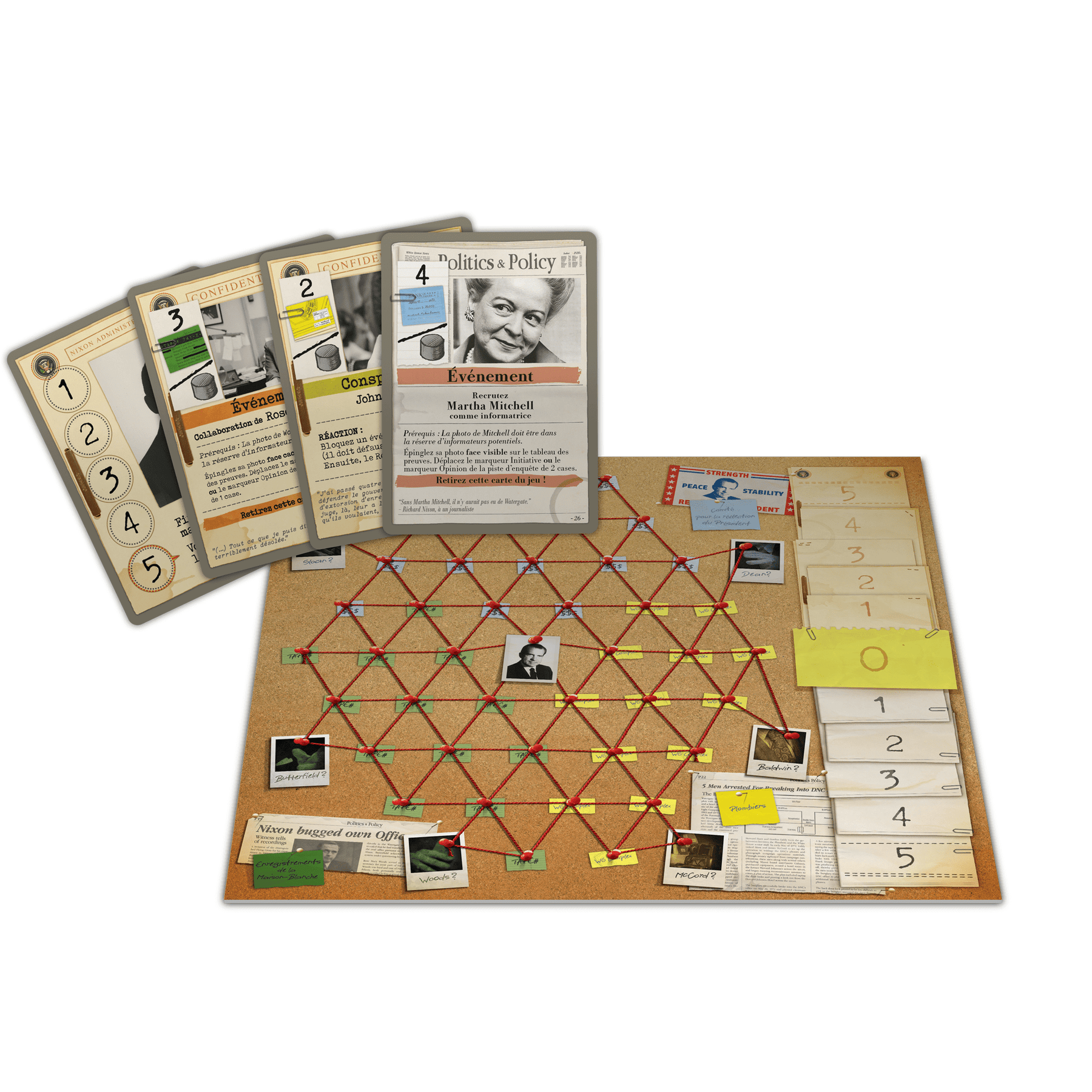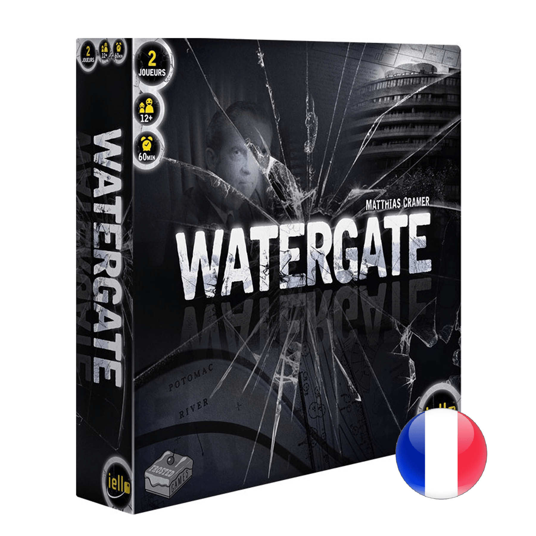 Watergate est un jeu tactique plein de tension, qui invite les joueurs à effectuer des choix stratégiques cornéliens pour atteindre leurs conditions de victoire avant l’adversaire. Fort de sa thématique totalement imprégnée dans le jeu, il permet de créer des duels épiques sur fond de scandale politique.