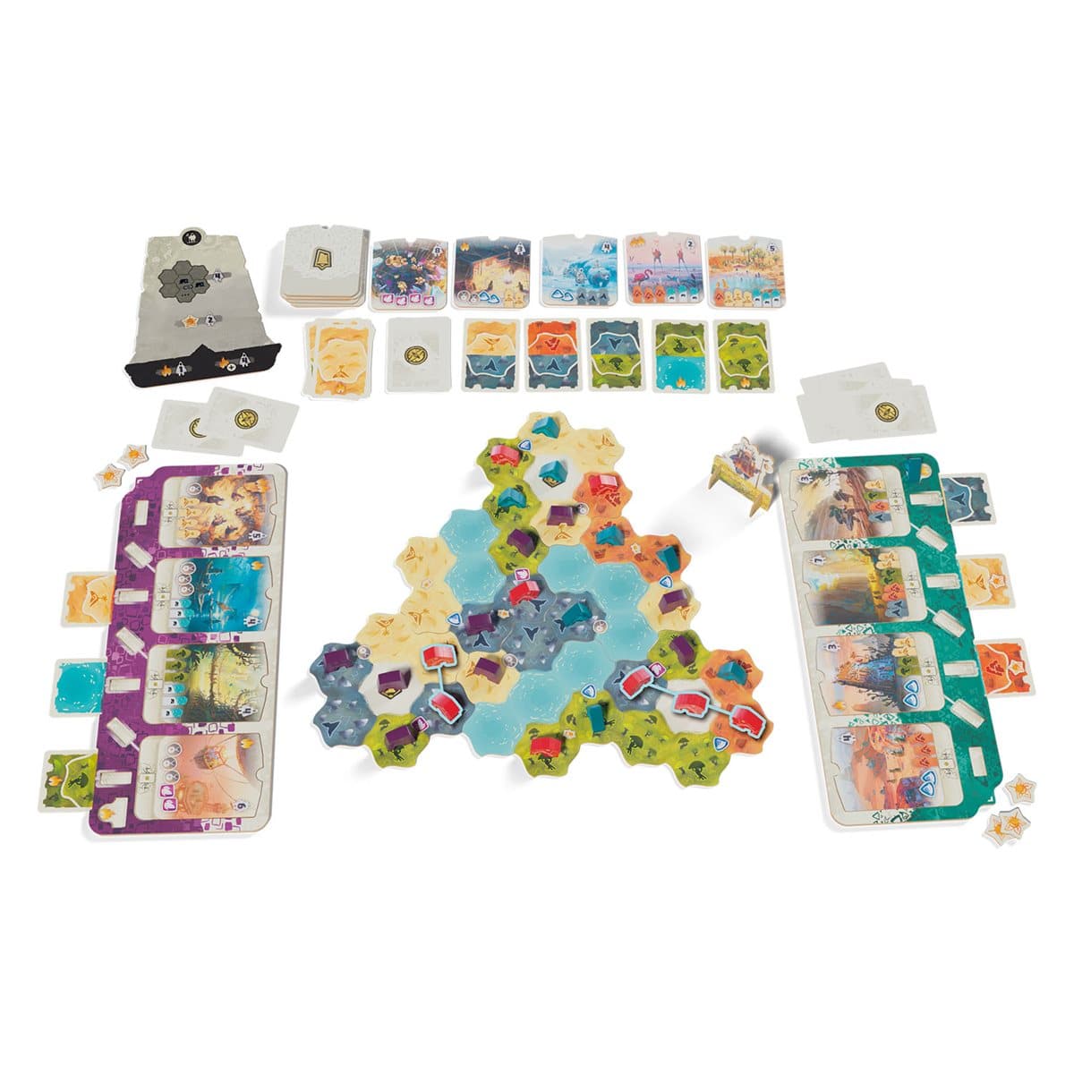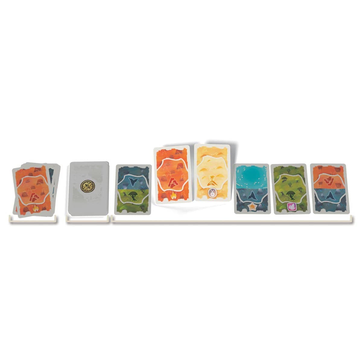 Dewan te plonge à la tête d’une tribu en quête de survie dans un monde où les territoires sont rares et disputés. À chaque tour, tu dois choisir entre enrichir ta main de cartes Terrain ou dépenser ces précieuses ressources pour étendre ton influence sur la carte. Le cœur de l’expérience repose sur le placement de territoire, la gestion intelligente de ta main et une course constante pour optimiser chaque action. Les zones explorées offrent des baies, le feu devient une ressource clé et chaque camp posé rapproche ta tribu de l’accomplissement de ses récits. Le rythme est soutenu, les décisions sont serrées et chaque partie raconte une histoire différente, façonnée par les choix des joueurs.