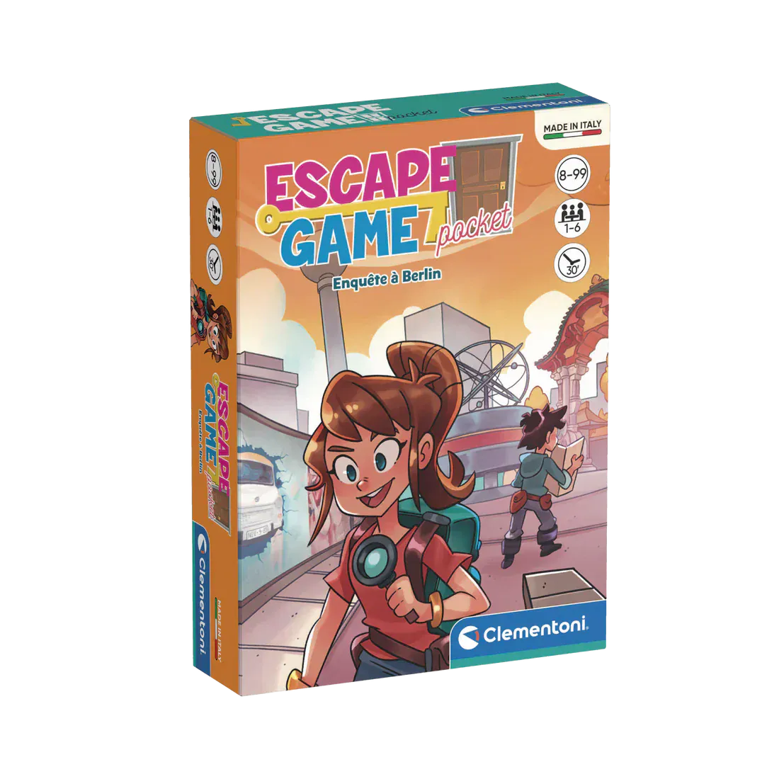 Conçu par Clementoni, spécialiste du jeu d’enquête, Escape game: Enquête à Berlin combine matériel physique et narration pour offrir un défi intelligent et accessible.