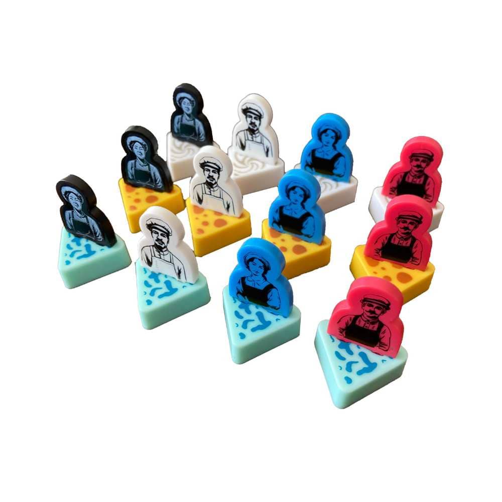 Vous êtes un fromager français du début du 20ème siècle fabriquant, affinant et commercialisant vos fromages artisanaux. Devenez le fromager le plus prestigieux de France en dirigeant une crèmerie à succès et en fabriquant des fromages d'exception. Fromage est un jeu de placement d'ouvriers simultané dans lequel chaque joueur fabrique du fromage et rassemble des ressources dans le quadrant du plateau qui lui fait face. Une fois que tous les joueurs ont placé leurs ouvriers, le plateau tourne, faisant vieillir tout fromage fabriqué et présentant à chaque joueur un nouvel emplacement. Puisque tous les joueurs jouent en même temps, Fromage condense en trente minutes seulement la sensation d'un jeu hautement stratégique de style Eurogame.