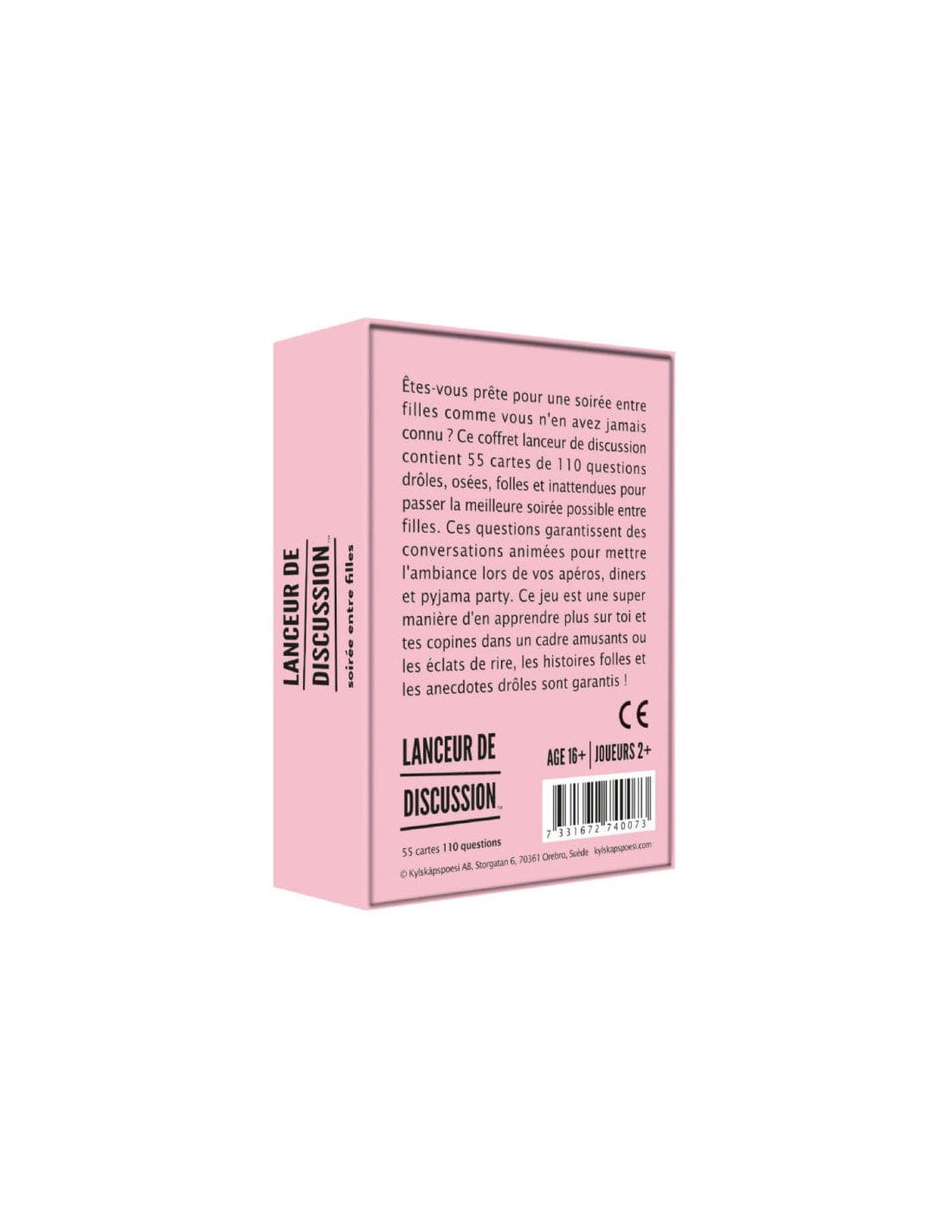The Lanceur de discussion – Soirée filles (FR) is the perfect starter for a fun and unforgettable girls night. With 55 cards offering 110 questions, this compact box is filled with bold, funny and surprising prompts that spark laughter and conversation.