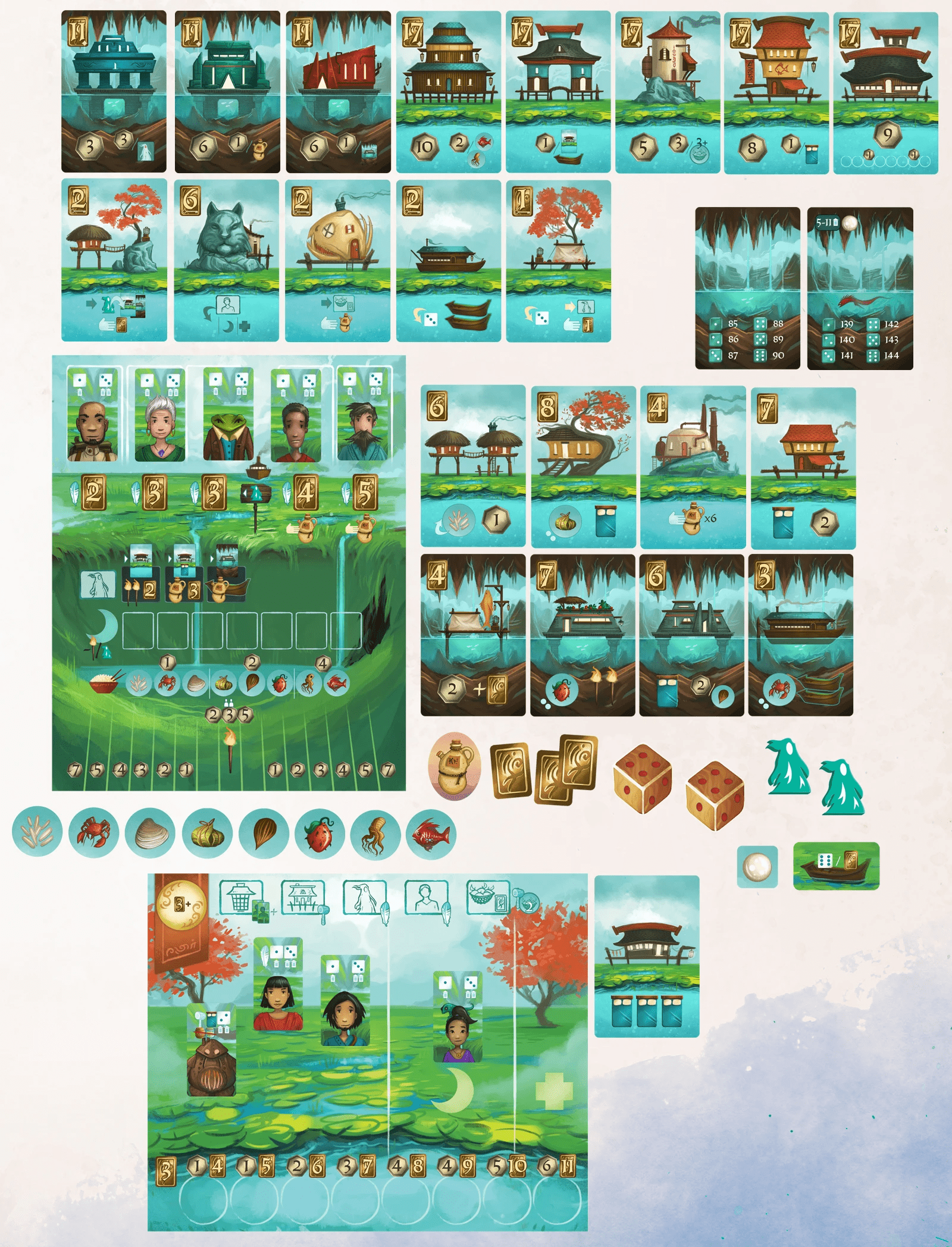 - Boats! Players can gain boat tokens, which can be used to alter die rolls or gain coins.
