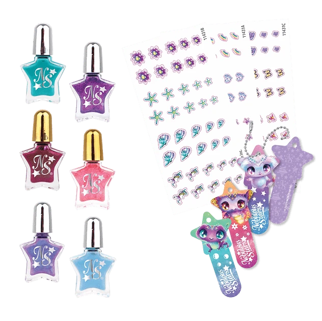 Amuse-toi à décorer tes ongles aux couleurs de ta Star préférée, avec cet ensemble incluant 4 vernis, 40 autocollants et une lime à ongles.