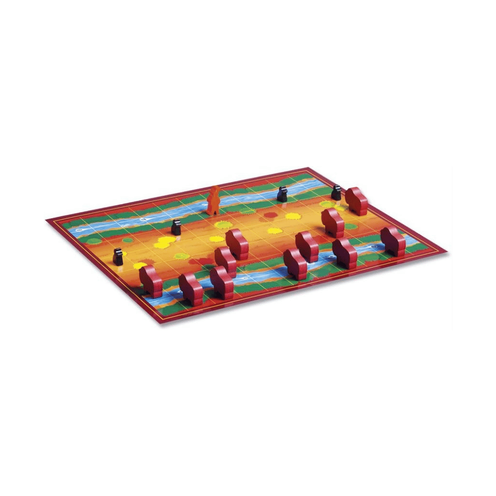 voir un large nuage de poussière. Le grondement du tonnerre martèle et s’étend audessus de la prairie. Rien de bon pour le petit village indien de l’autre côté de la rivière… Un troupeau de bisons incontrôlables se dirige tout droit dessus! Le chef de la tribu réussira-t-il à sauver son village avec l’aide de ses quatre chiens? Sinon les bisons traverseront la rivière… et gagneront cette partie d’échecs!